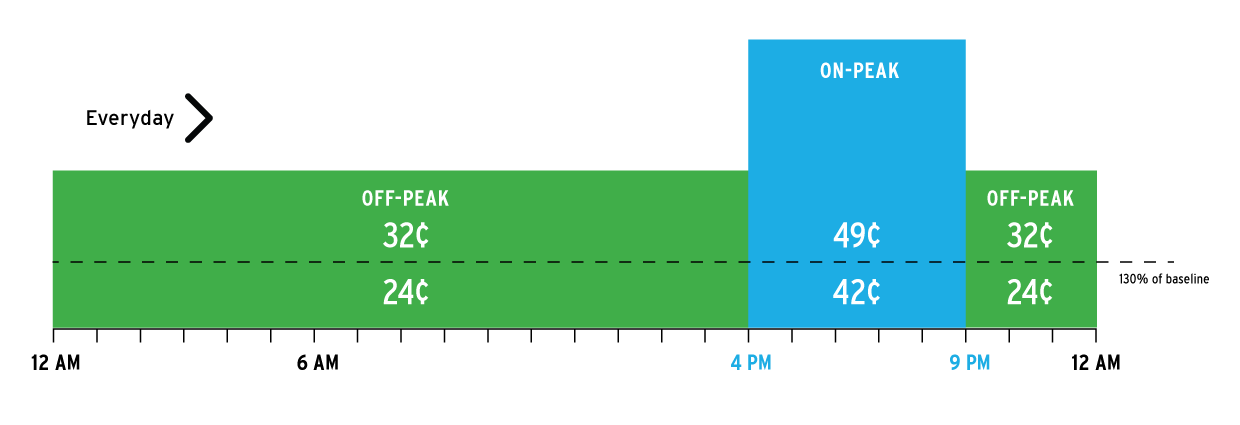 If you’re on a Time-of-Use pricing plan (which most customers are), you can save money by shifting your energy use outside these on-peak hours – and save even more by taking advantage of the lowest-priced electricity during super off-peak hours.
